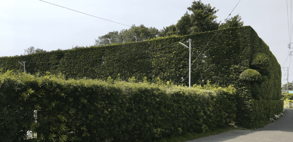 - 5月と8月の終わり、年2回の刈り込みが理想的だが、グルっと一周刈り込みするとなると個人負担も大きい。